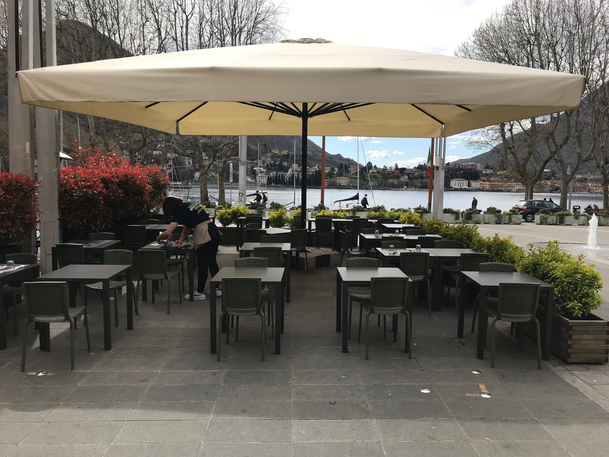 I nostri ombrelloni professionali sono dotati di camino antivento (lo sfiato in alto) e strutture rinforzate molto superiori a quelli domestici. Tuttavia, in caso di forti temporali o raffiche eccezionali, raccomandiamo sempre di chiuderli. È un’operazione che richiede pochi secondi e protegge il tuo investimento.
