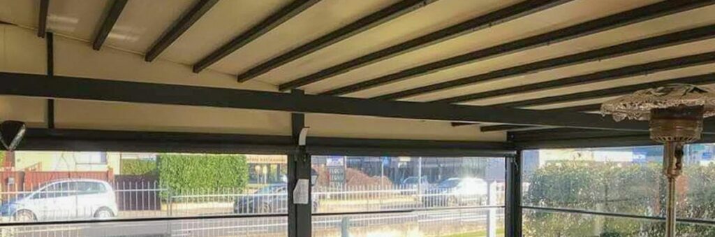 No, la tecnologia è studiata per questo. Le lame sono progettate con una canalina interna che, in fase di apertura, convoglia l’acqua residua verso le grondaie perimetrali, impedendo che goccioli sui tavoli o sui clienti seduti sotto. Le pergole sono suscettibili alle grosse intemperie.
