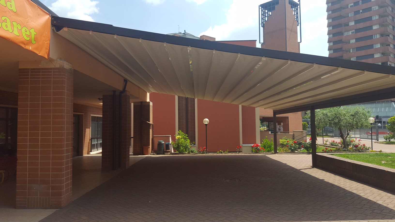 Il vero vantaggio B2B per un locale di lusso è l’automazione. La nostra tecnologia è dotata di sensori intelligenti (pioggia, vento, sole). La struttura reagisce alle condizioni meteo prima che il cliente avverta il minimo disagio, chiudendosi automaticamente alla prima goccia di pioggia. Questo permette allo staff di sala di concentrarsi esclusivamente sul servizio, senza preoccuparsi della gestione manuale della copertura.