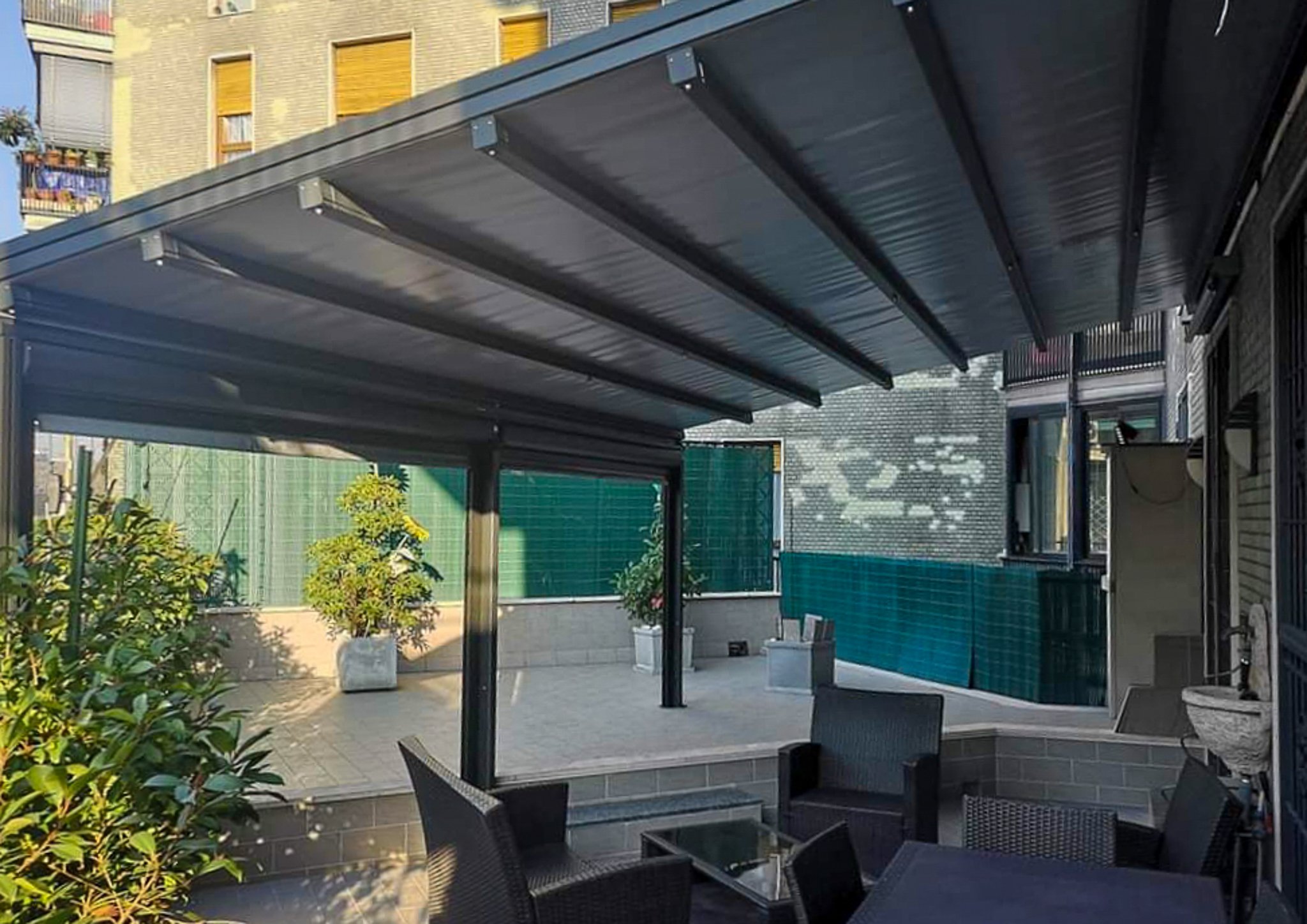 Con la giusta configurazione, sì. Una pergola bioclimatica chiusa con vetrate scorrevoli “Slide Glass” e dotata di riscaldatori a infrarossi diventa una sala utilizzabile 365 giorni l’anno. Non ha l’isolamento termico di un muro in mattoni, ma crea un comfort sufficiente per pranzare e cenare anche a dicembre.